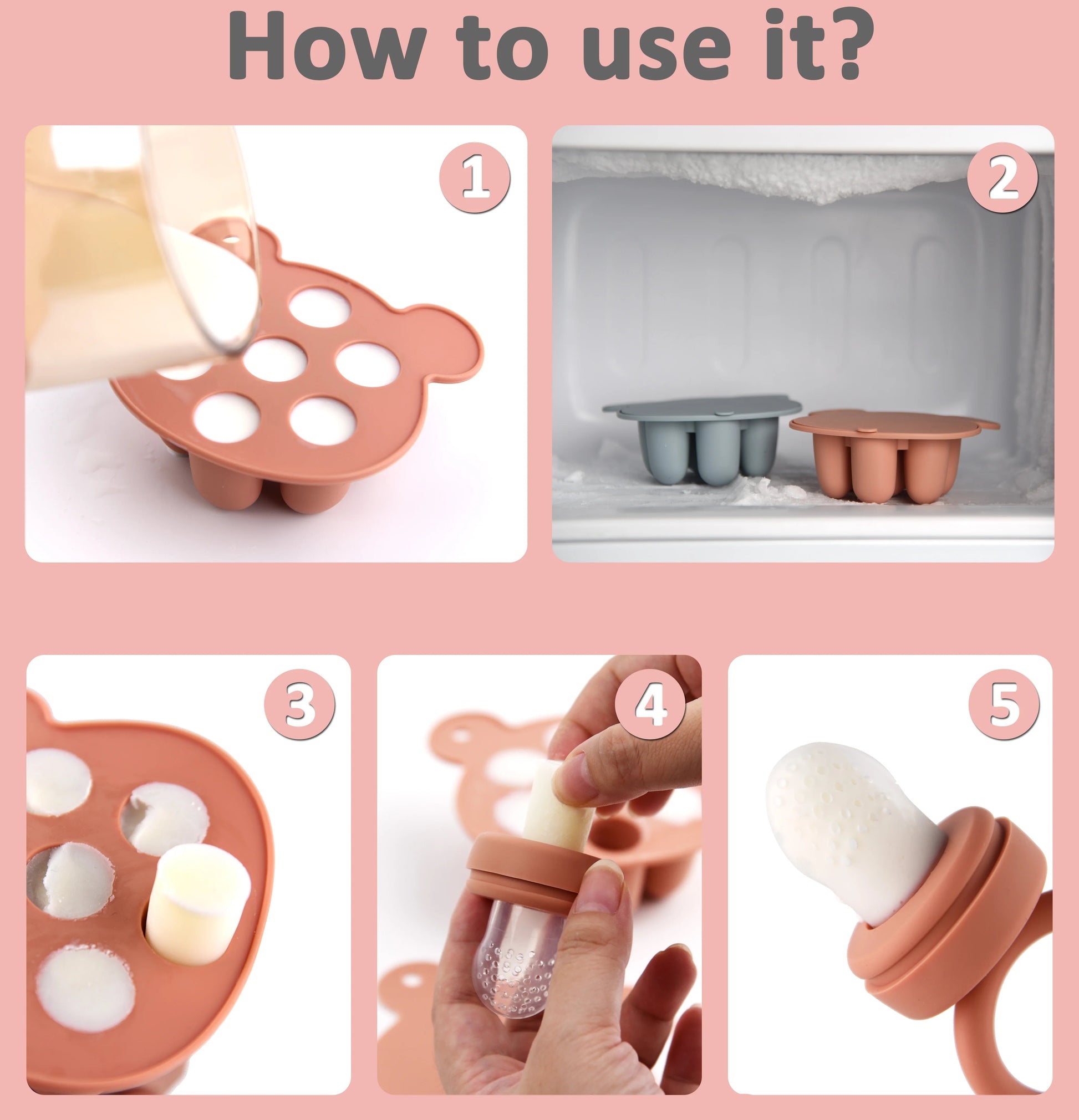 Simplify feeding time and soothe teething with the Silicone Fruit Feeder Pacifier & Breastmilk Popsicle Freezer Set. This smart 2-in-1 design includes a safe fruit feeder pacifier and a silicone freezer tray, allowing parents to prepare and store breast milk, purees, or healthy frozen treats in advance. Perfect for introducing solids and soothing sore gums.